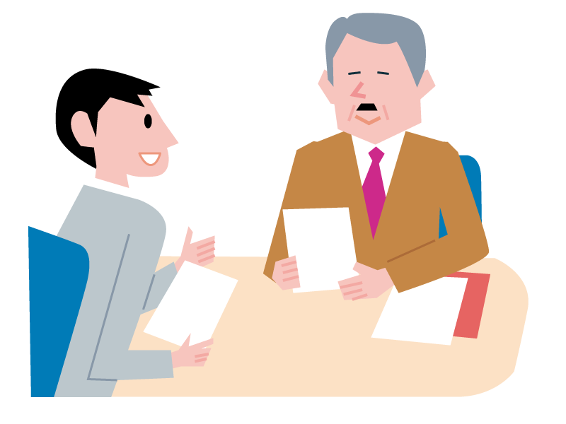 書類を手にしながら打ち合わせをしている男性たち