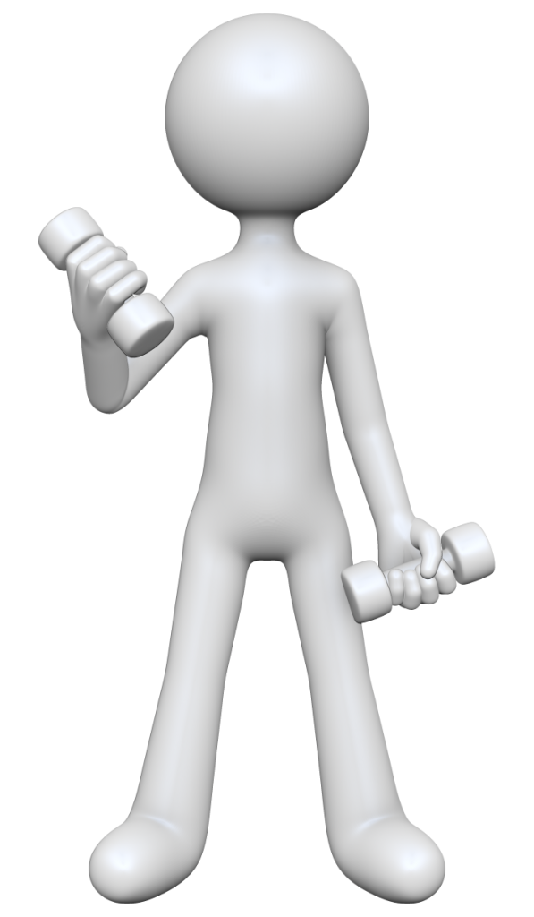 ダンベルで運動する棒人間の3Dイラスト