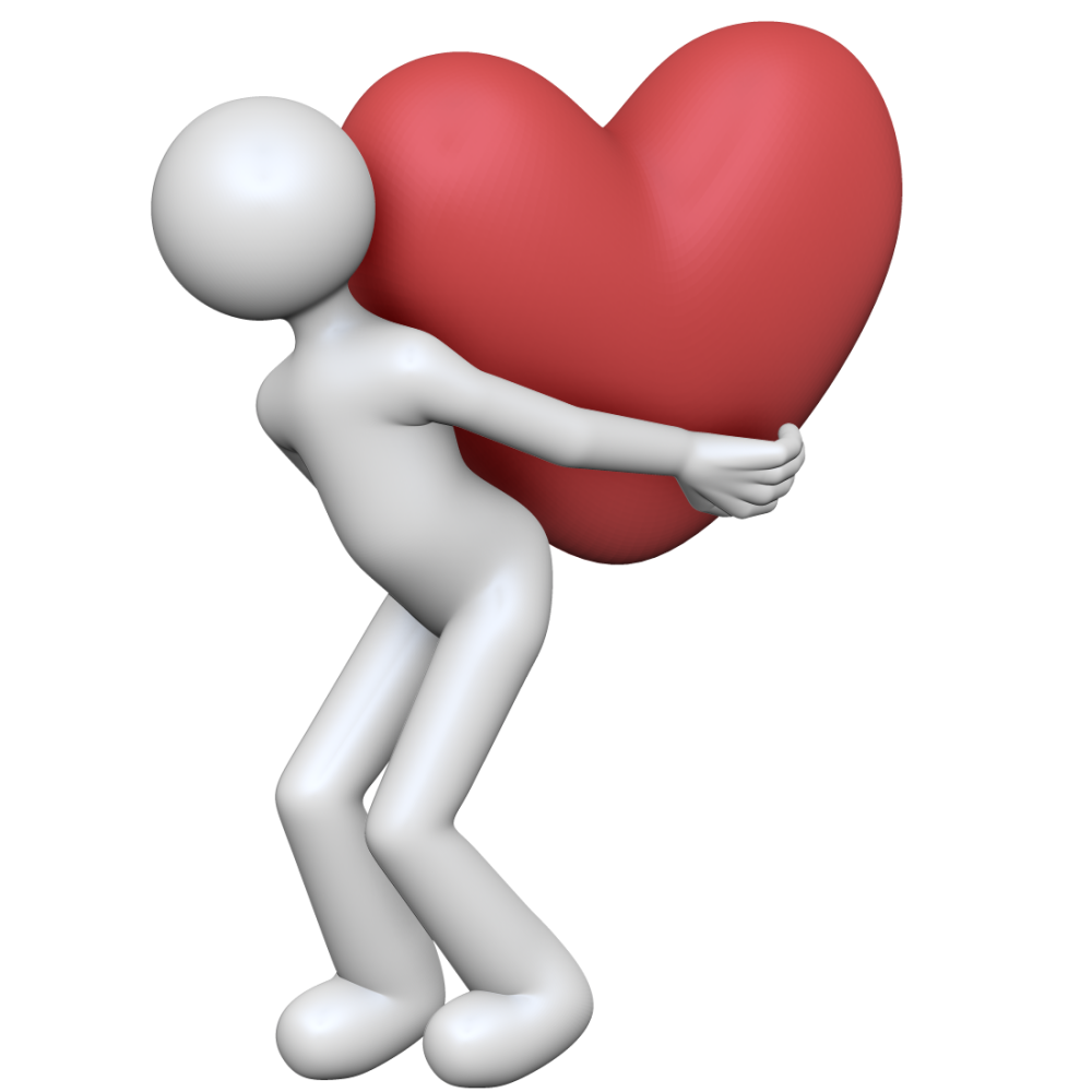 巨大なハートを背負う棒人間の3Dイラスト