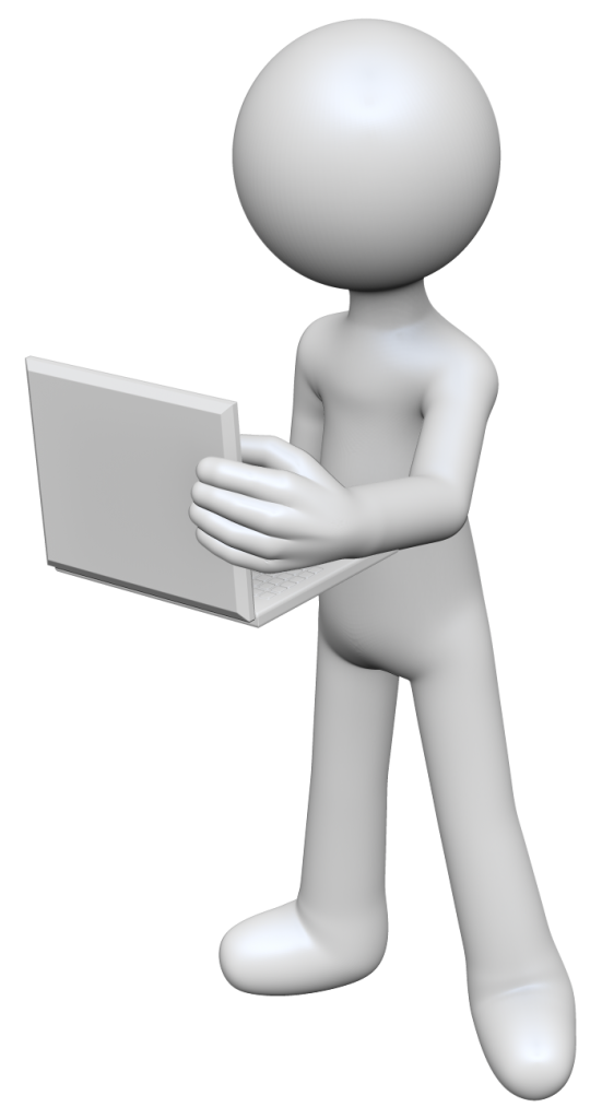 ノートパソコンを手に持つ棒人間の3Dイラスト