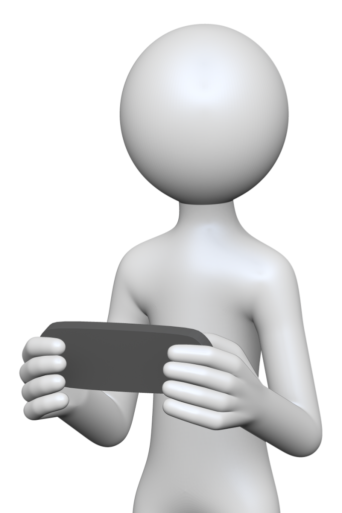 携帯ゲームで遊ぶ棒人間の3Dイラスト