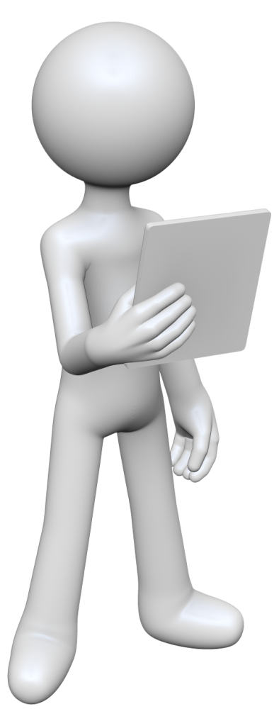タブレットを持つ棒人間の3Dイラスト